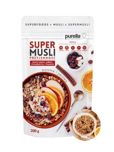 Musli płatki śniadaniowe naturalne na mleko z rokitnikiem siemieniem cynamonem zdrowe śniadanie purella pzryjemność 200g