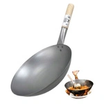 Wok ze stali węglowej z okrągłym dnem śr. 30cm drewniana raczka Jade Temple