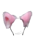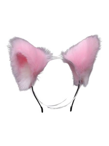 Opaska kocie uszy futrzane różowe z białymi środkami miękkie strój bal karnawałowy cosplay