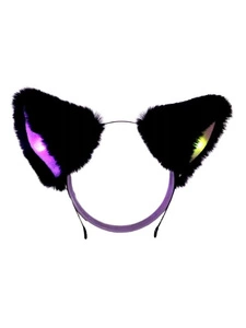 Opaska kocie uszy świecące LED futrzane czarne różowe miękkie strój bal karnawałowy cosplay