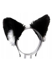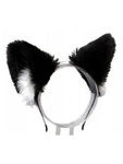 Opaska kocie uszy futrzane czarne z białymi środkami miękkie strój bal karnawałowy cosplay
